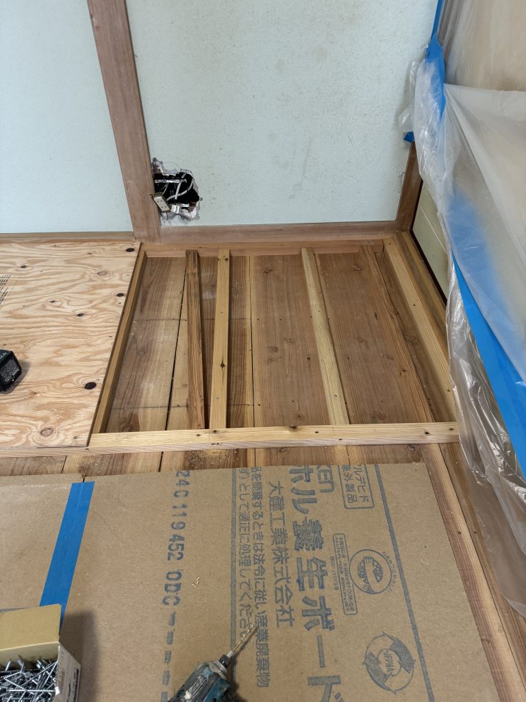 畳を撤去して一部板張りにしていきます。
