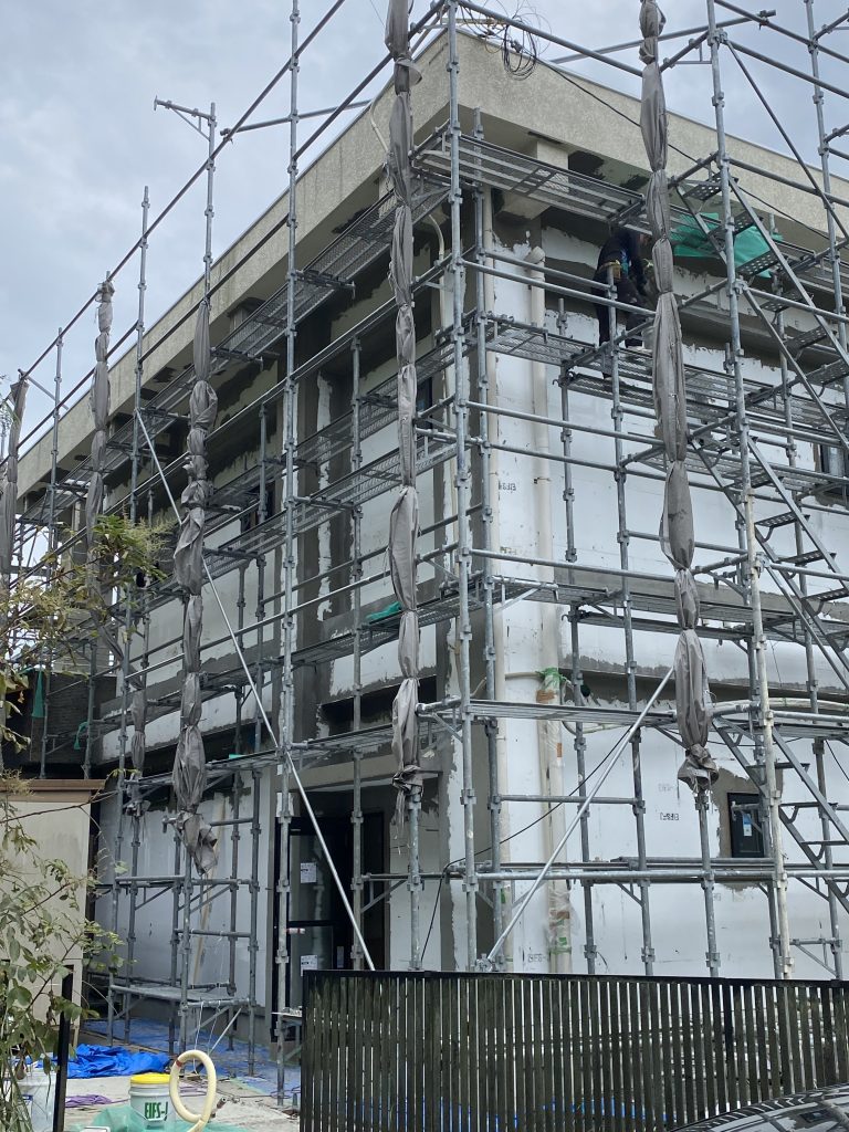 RC断熱リノベーション | 2025年11月14日 更新 耐震・フルリノベーション この施工が完成するまで REPORT 2026年01月01日(木) 築51年の鉄筋コンクリートのお家を大改造 鉄筋コンクリートのラーメン構造なので広いリビングが出来そうです、断熱性にも配慮しサッシや断熱材にもこだわって施工していきます。 2026年01月01日(木) 鉄筋コンクリートは熱容量が大きいので、外部からの日差しや冷たい風の影響を外から受けにくいように外断熱を採用しました。これで室内の環境を快適に計画させていただきました。 2026年01月01日(木) 外部を左官仕上げにすることにより、塗装のランニングコストを減らすと共に外観のイメージを高級感のあるように仕上げていきました。 2026年01月01日(木) 床下はアイシネン施工で断熱気密性を高めていきます。 2026年01月01日(木) 開放感のあるデッキ 2026年01月01日(木) 外観 2026年01月01日(木) 高級感のあるLDK 2026年01月01日(木)